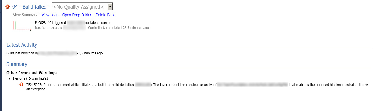 Dans mon cas de figure, non seulement j’avais ce problème (et je ne l’aurais vu qu’après avoir réellement réparer mon autre bug) , mais également un autre… Un tout bête… Un tout simple… Sauf que TFS ne nous indique pas clairement son erreur.